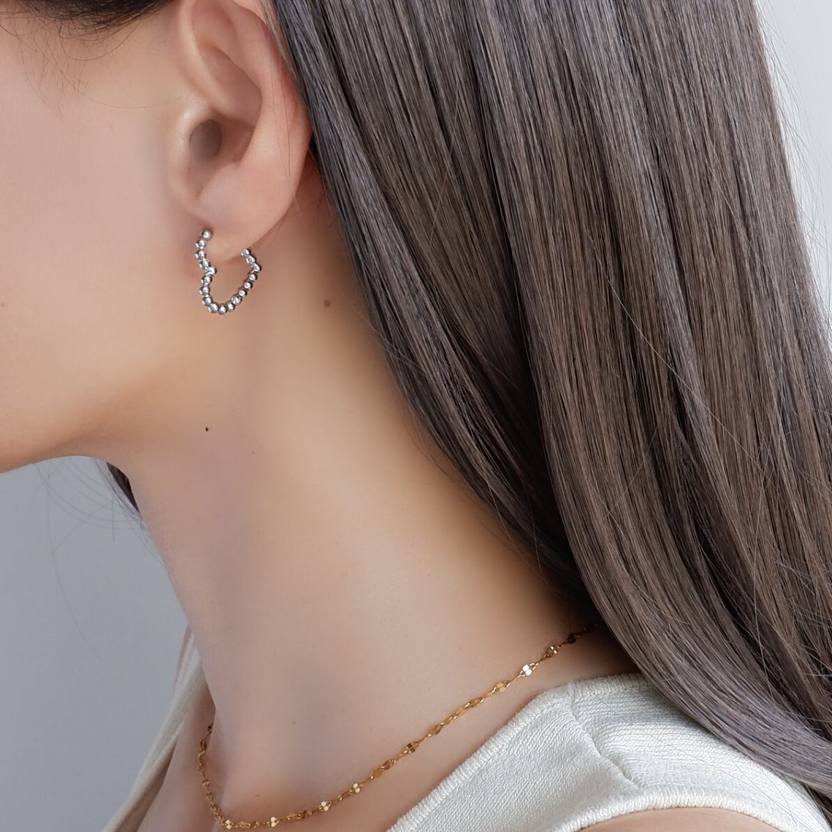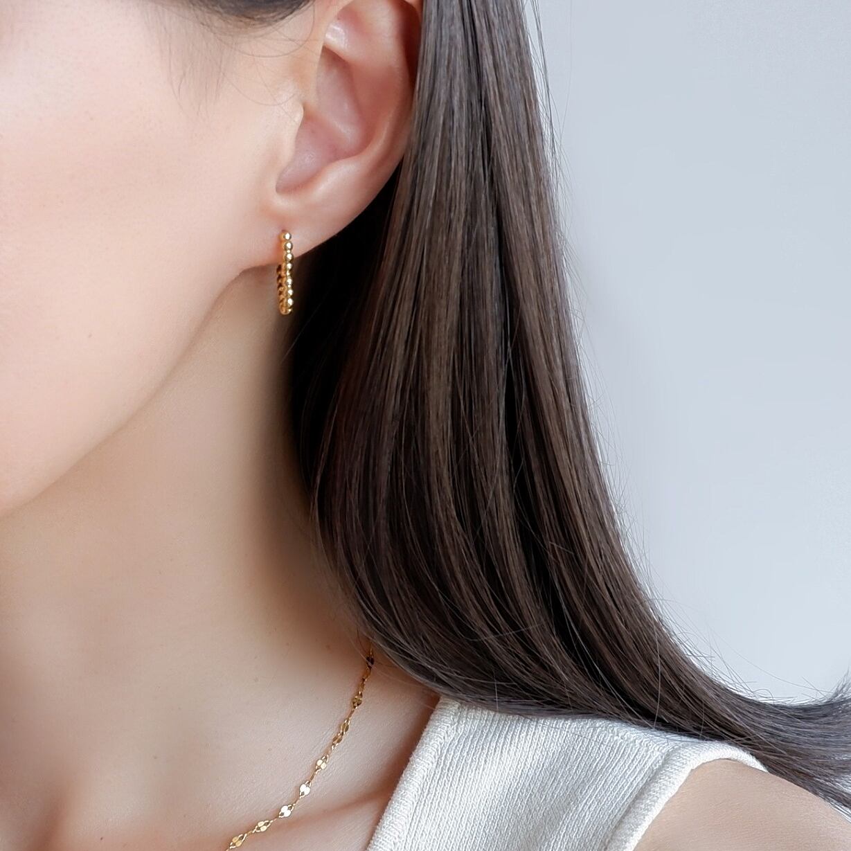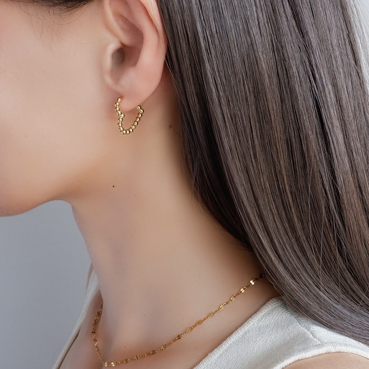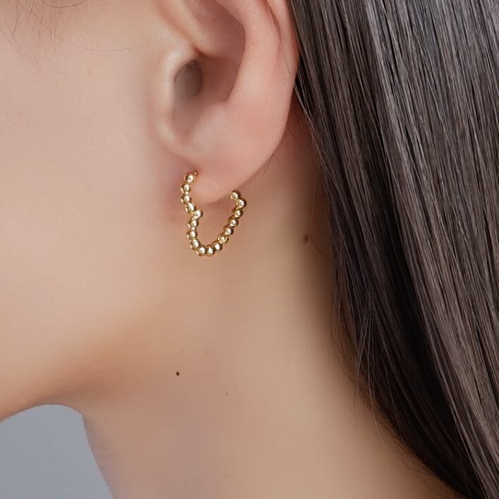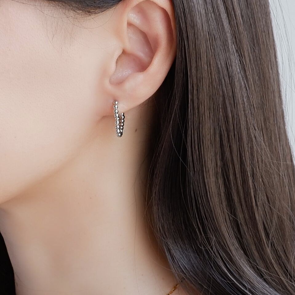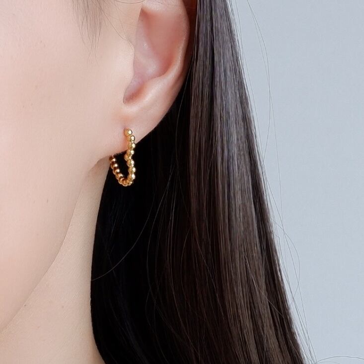 耳元を明るく彩るフープピアス。