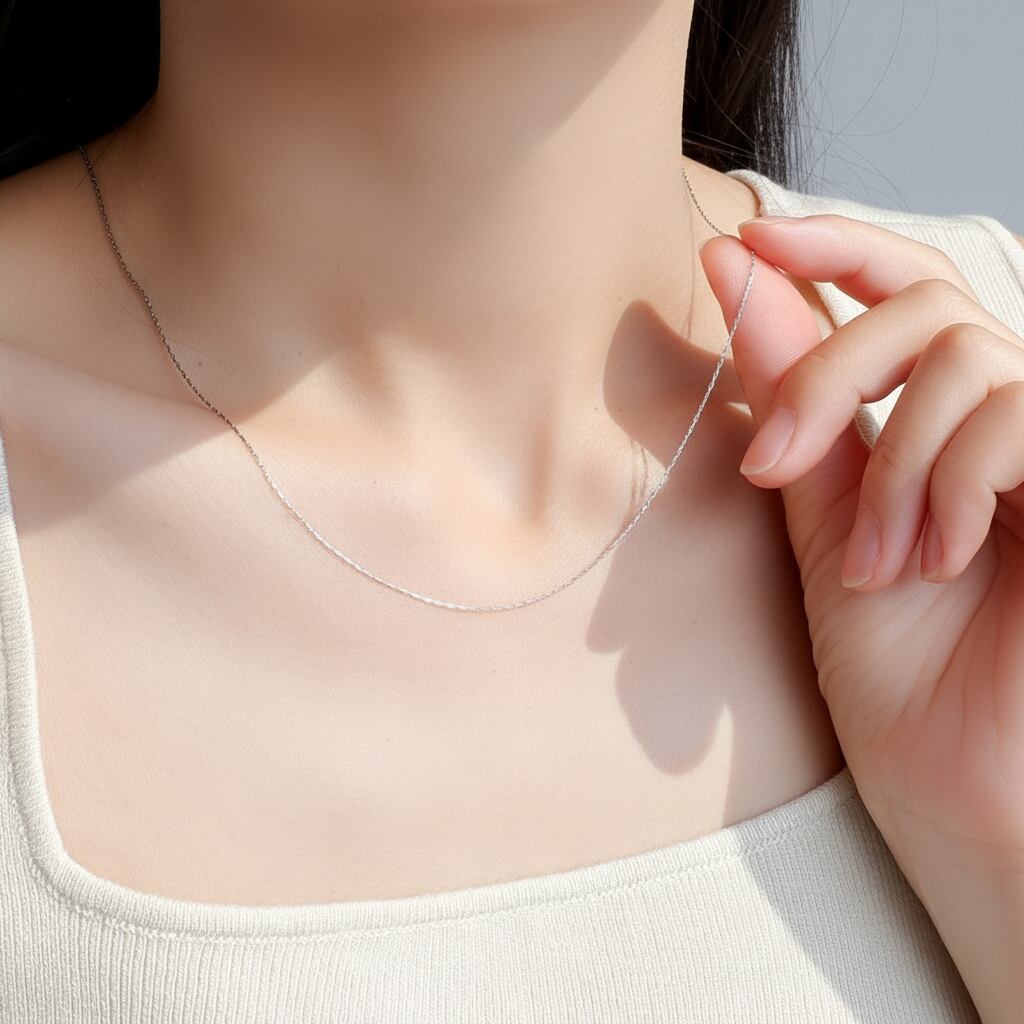 素肌に溶け込む洗練されたネックレス。