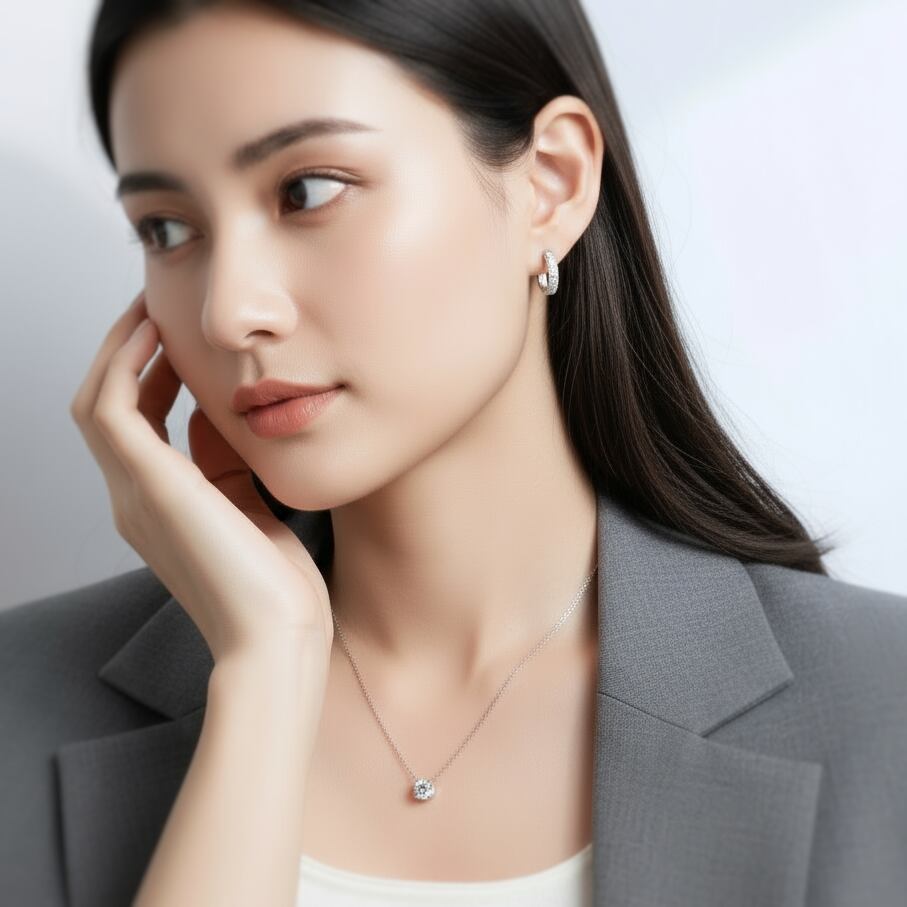 -Zirconia Necklace & Hoop Pierce Set