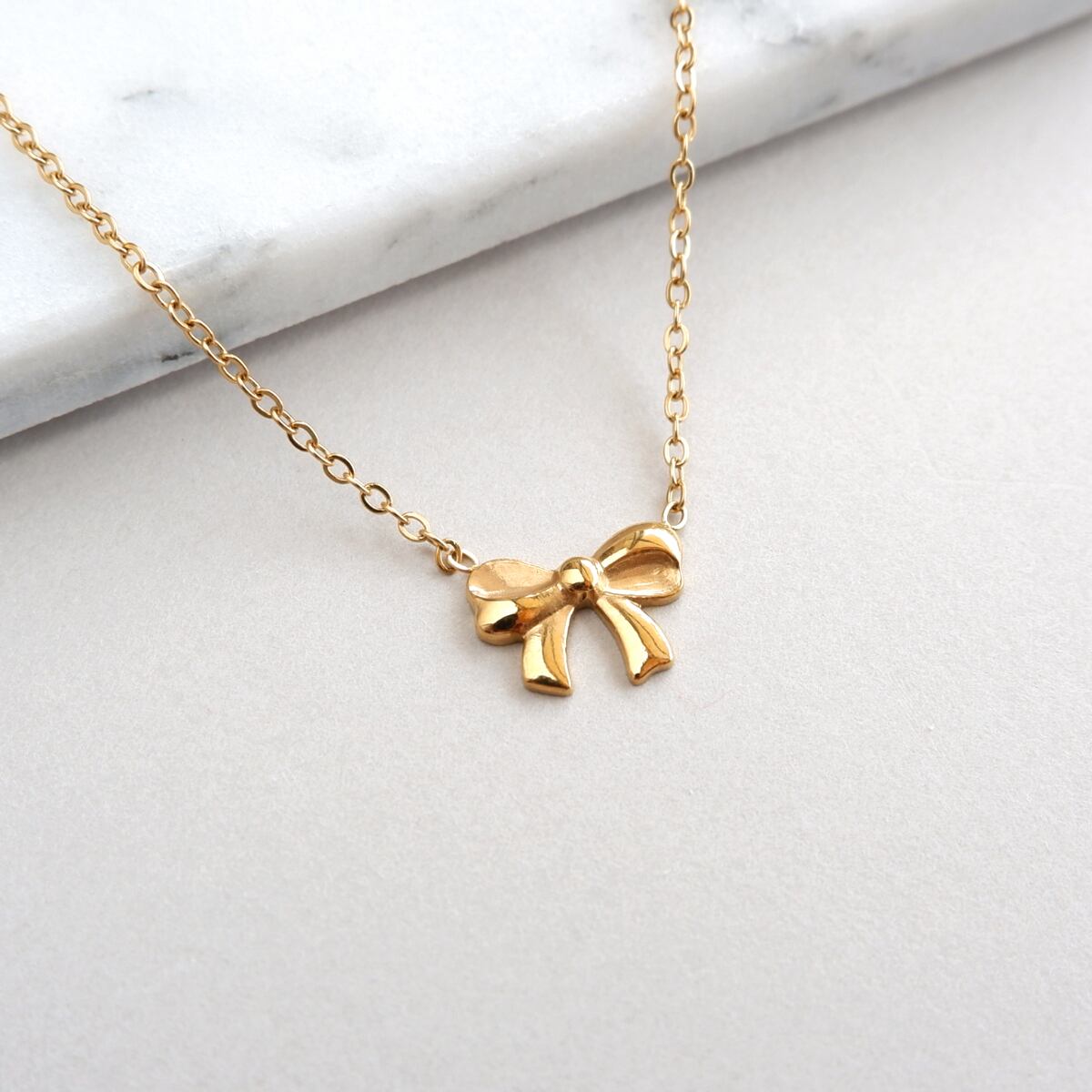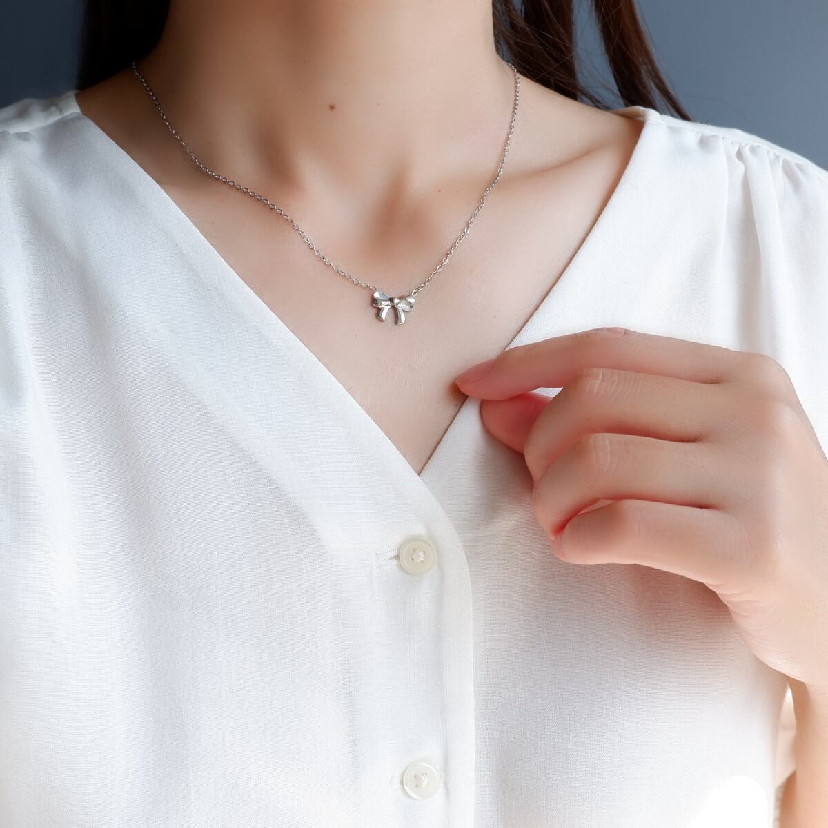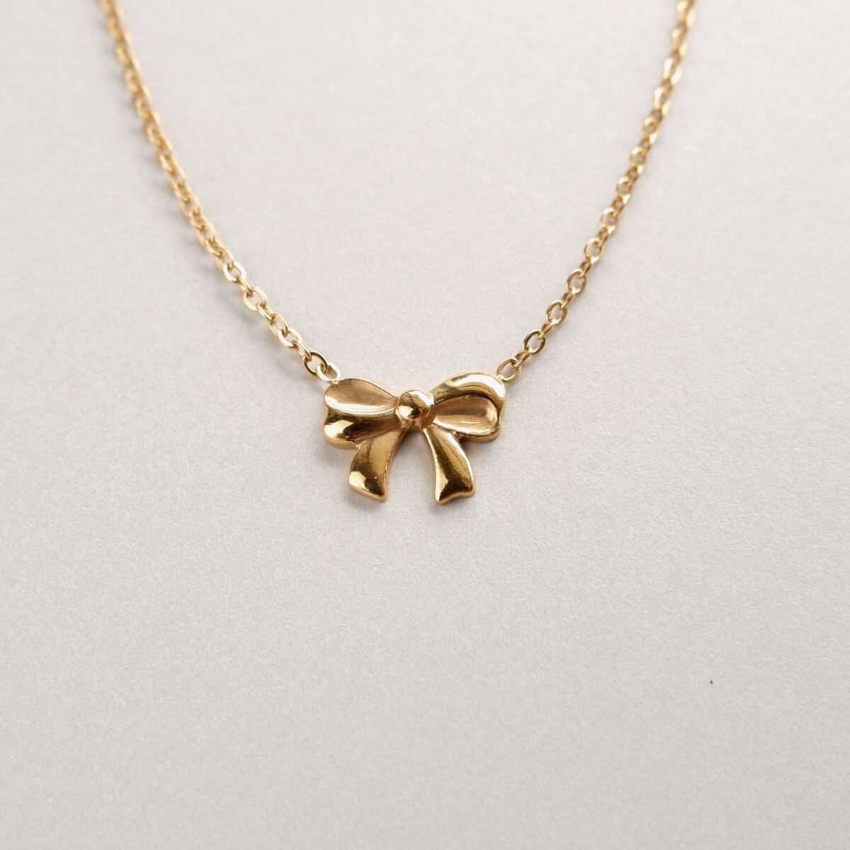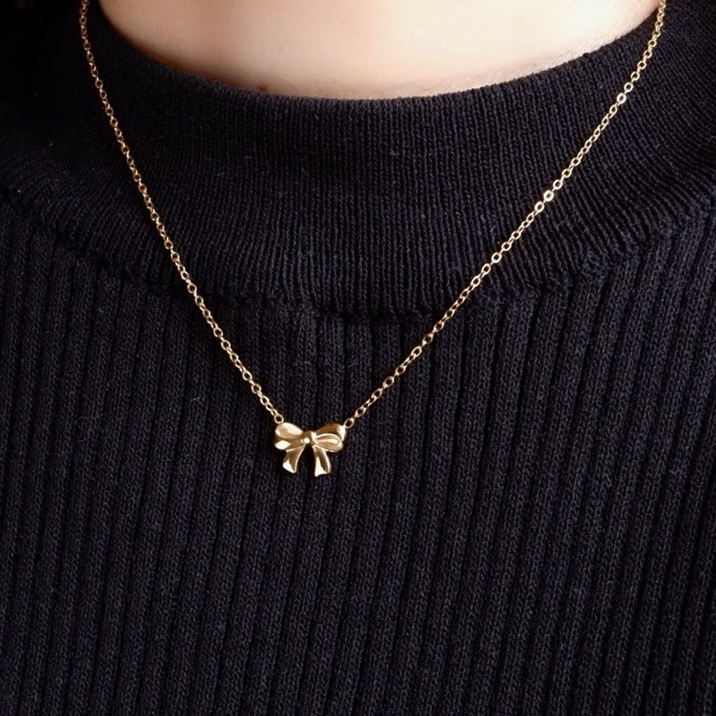 小ぶりで上品なリボンネックレス。